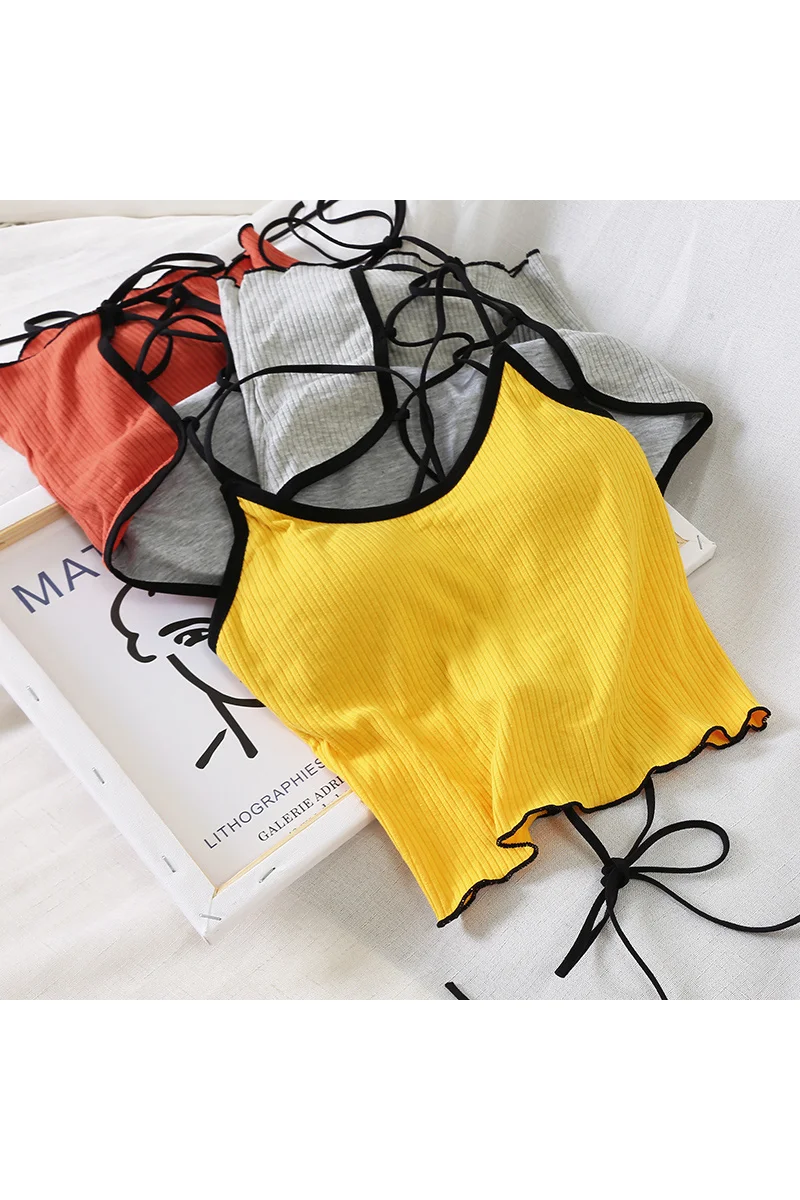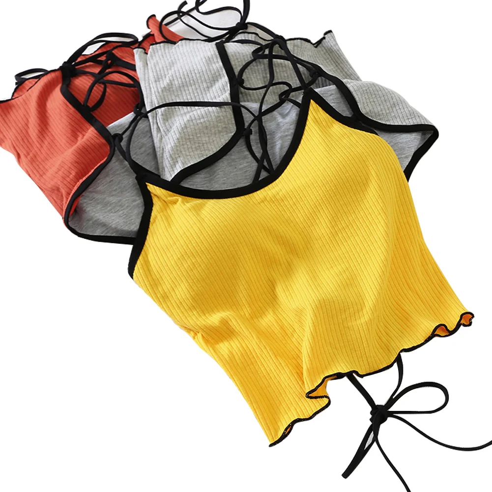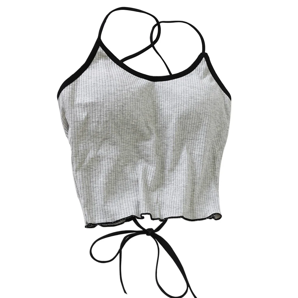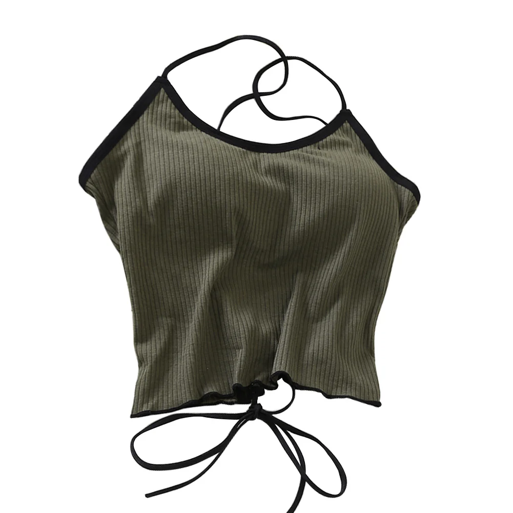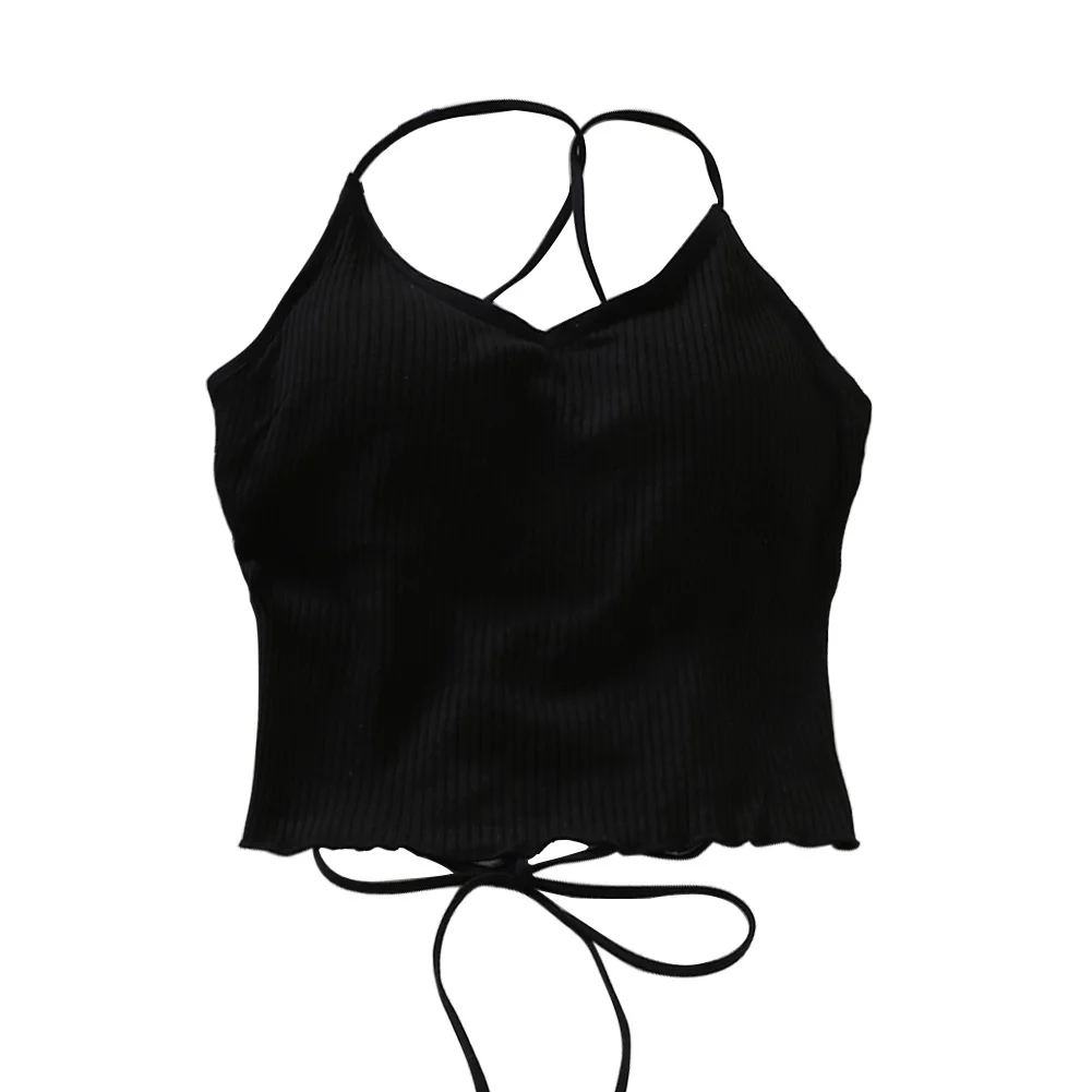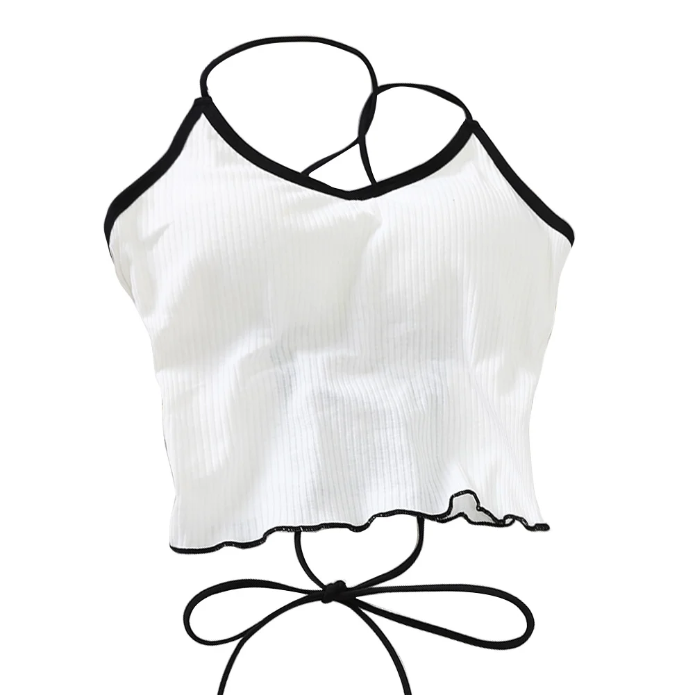 ITOOLIN Women Tops With Padded Cotton Backless Bandage Halter Y2K Tops Sexy Crop Tops Women Underwear Tops For Women Summer 2024
