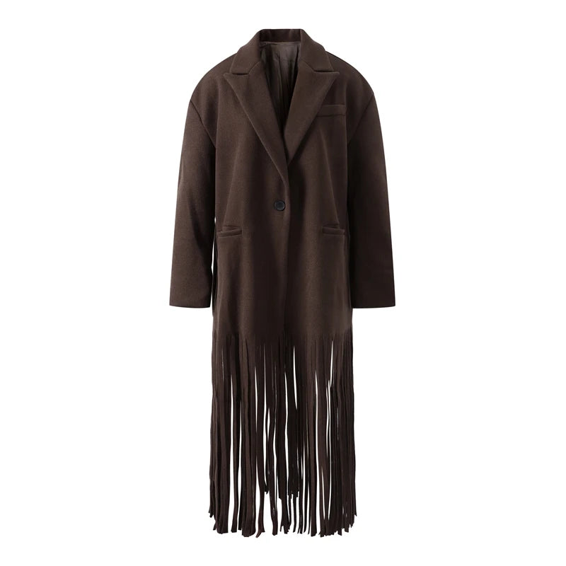 Vintage Tassel Solid Suit Trench Women Casual Lapel Single Button Long Tassels Jackets Coat Female Winter Chic Design Outwear