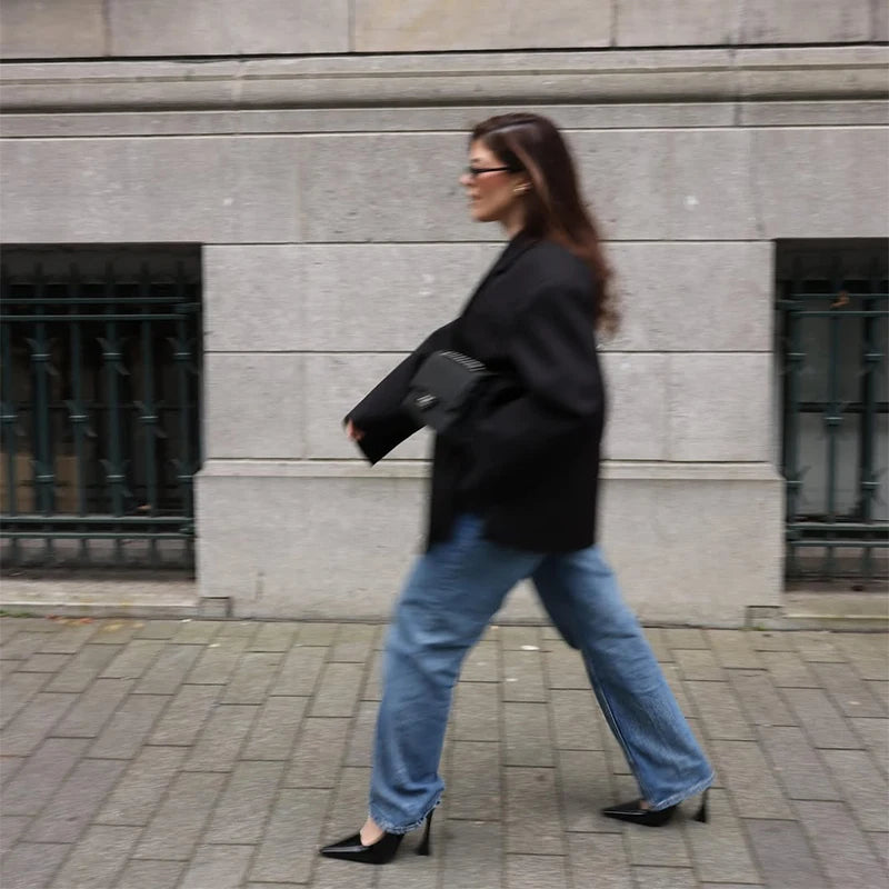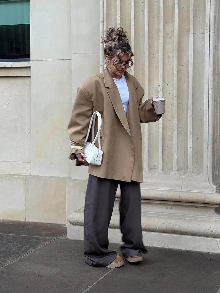 Casual Oversize Lapel Single Breasted Suit Jackets Women Chic Full-Sleeve Pocket Blazer Coat Lady High Street Commute Outerwears