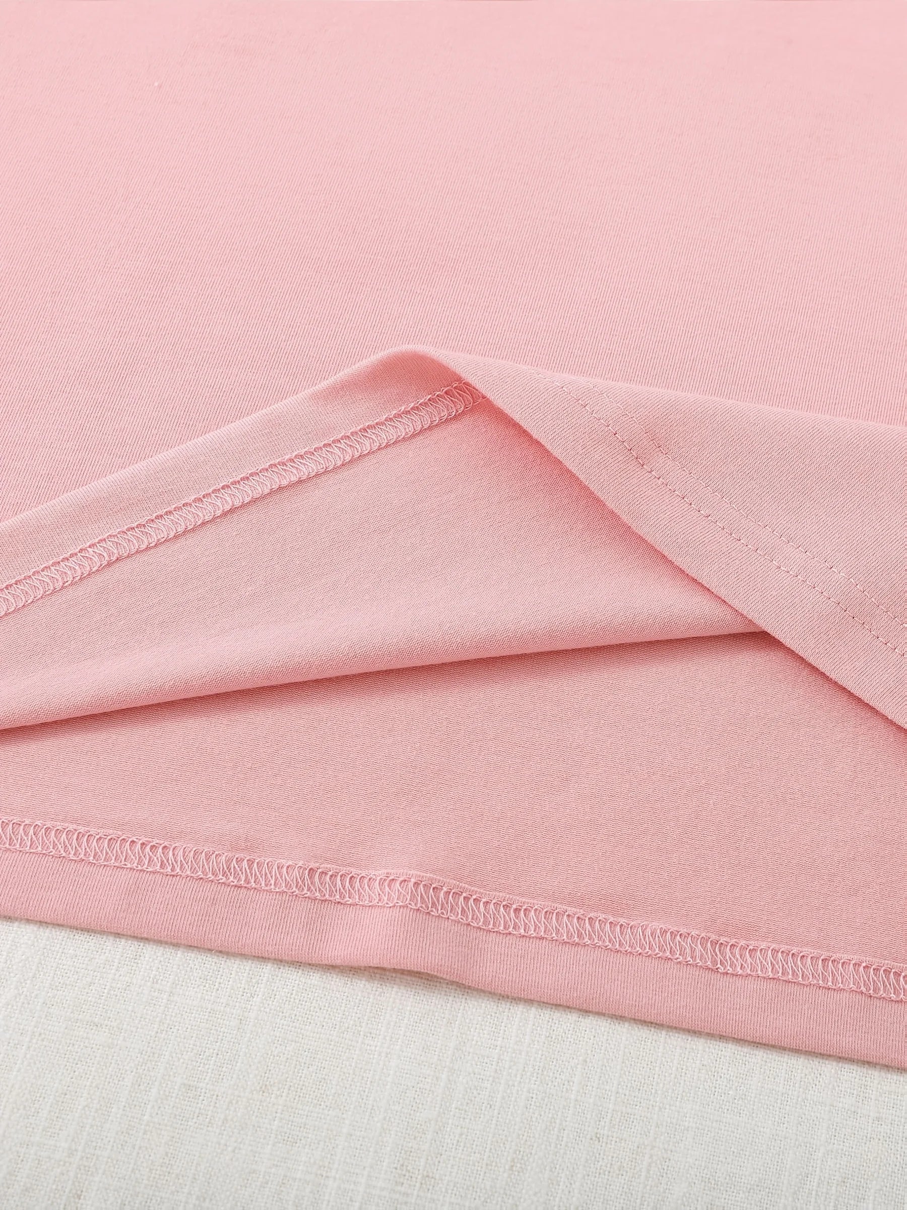 Pink Heart Pattern Teacher T-Shirt Pink Heart and Apple Pattern Print Crew Neck Short Sleeve Top for Women Urban Style Printed